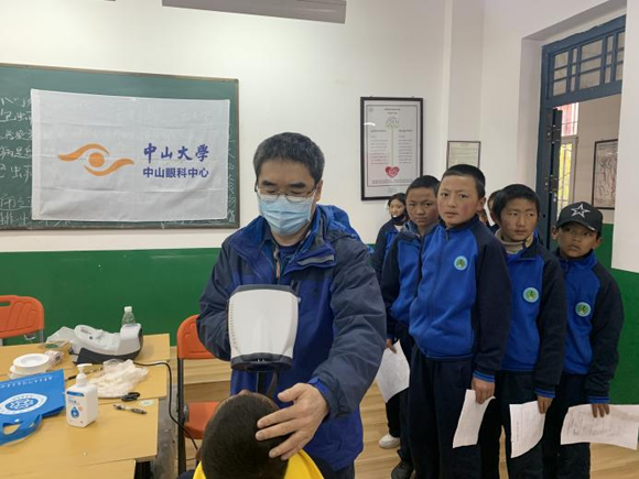 为中小学生做视力筛查及免费配镜(来源:中山眼科中心)